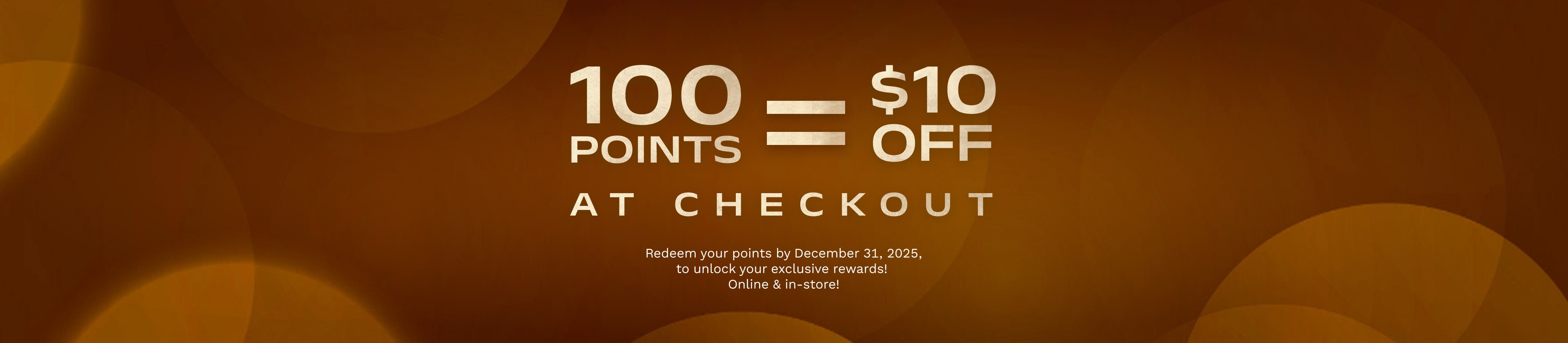 We issue 1 point per $1 spent. Every 100 points is equivalent to $10. You can start redeeming points at 100 points. Points can only be earned for actual payment for products.