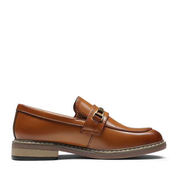 - Classic Style: A smooth and soft PU upper features a horsebit detailing, bringing a polished touch to your junior's outfit.
